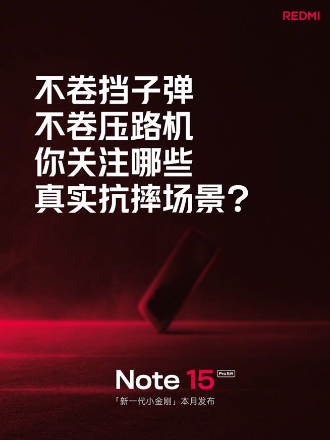 これによると、REDMI Note 15 ProシリーズはProおよびPro+の2機種の構成で、優れた落下耐性と防水性能を備えているとのこと。