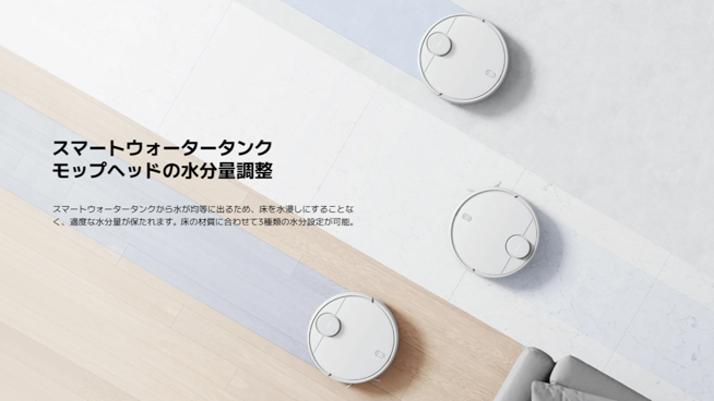 もちろん、ウォータータンクやダストコンテナも搭載。床の材質に合った適切な分量で水が均等に出るため、床を水浸しにすることなくきれいに掃除ができるようです。