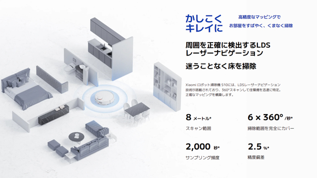 Xiaomi ロボット掃除機 S10は、LDS レーザーナビゲーションシステムを搭載した高性能なお掃除ロボットです。