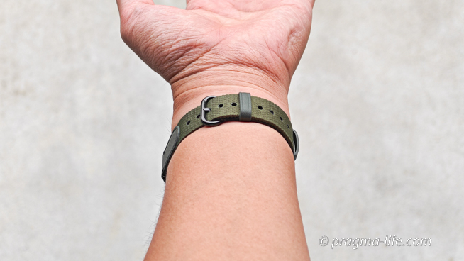 重量は実測で約25g。とりあえず手に着けておいて違和感のない軽さです。