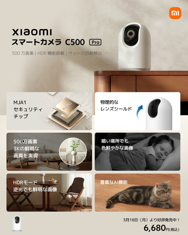 2024年3月18日、シャオミ・ジャパンは、「Xiaomi スマートカメラ C500 Pro」を発売しました。