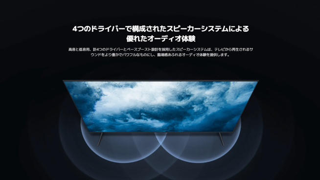 HDMI 2.1による4K 120Hzの超高画質伝送、Dolby Vision IQ、Dolby AtmosおよびDTS:Xに対応し、4つのドライバーで構成されたスピーカーシステムを搭載しています。